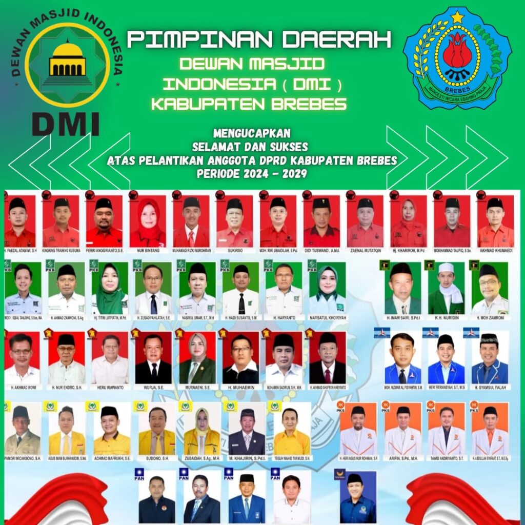 DMI (Dewan Masjid Indonesia) Kabupaten Brebes adalah lembaga yang bertujuan untuk mengelola dan memajukan aktivitas keagamaan dan sosial di Kabupaten Brebes, Jawa Tengah. DMI Brebes bekerja untuk mengkoordinasikan berbagai masjid di wilayahnya, mengadakan kegiatan keagamaan seperti pengajian, ceramah, dan kegiatan sosial lainnya untuk meningkatkan pemahaman agama dan kesejahteraan masyarakat. DMI juga berperan dalam memfasilitasi kerjasama antar-masjid serta mempromosikan perdamaian dan toleransi antar-umat beragama.